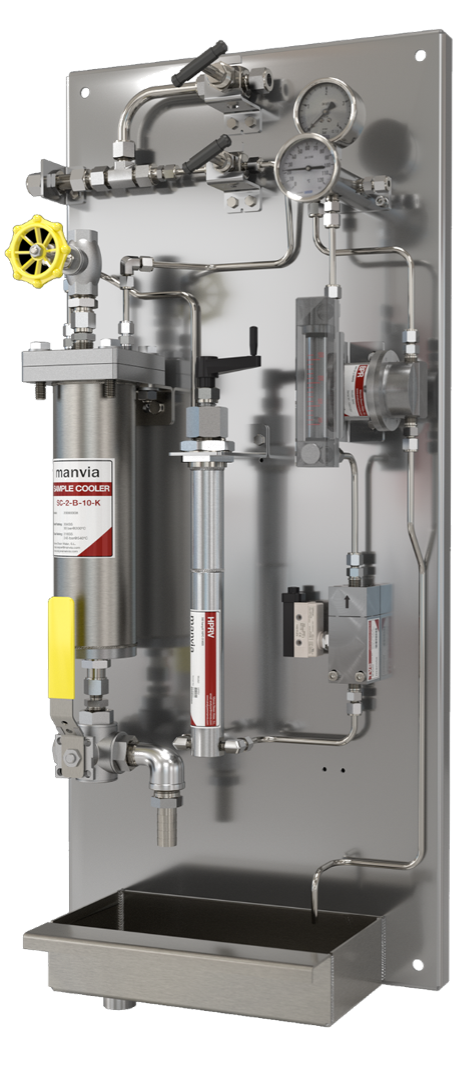 The Manvia Compact Conditioning Panel is a critical safeguard for high-pressure steam and water analysis. Engineered for extreme environments, it systematically reduces volatile process temperatures and pressures to precise, stable levels required for sensitive analytical sensors. By integrating primary and secondary cooling with automated thermal shut-off protection, the CP ensures maximum equipment uptime, prevents costly sensor damage, and maintains the highest standards of personnel safety in Power and Chemical processing plants.