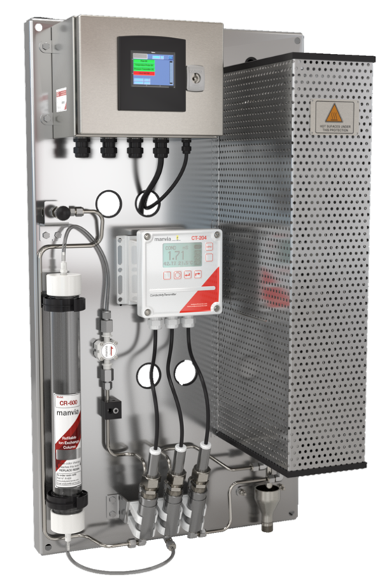 The Manvia Atmospheric Degasser is specifically designed to eliminate interference from dissolved gases, such as CO2, in steam-water cycle samples. By stripping away these non-condensable gases at boiling temperatures, the unit allows for the isolated measurement of Cation Conductivity. This high-precision analysis is vital for detecting early-stage salt contamination and ensuring the integrity of high-pressure boiler systems and turbine components.